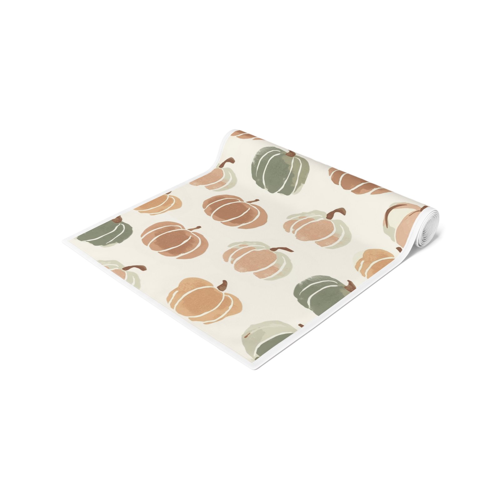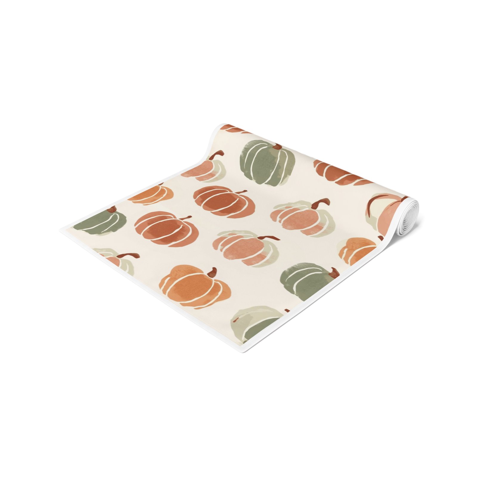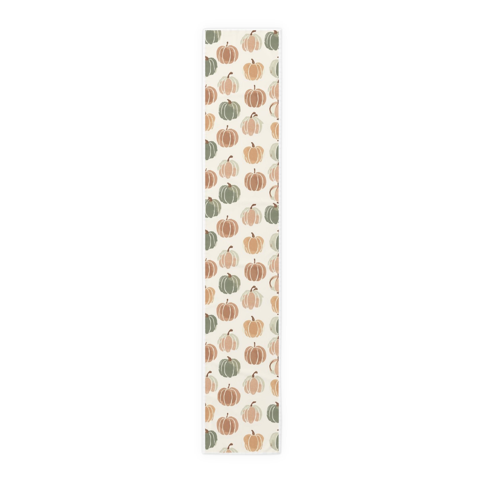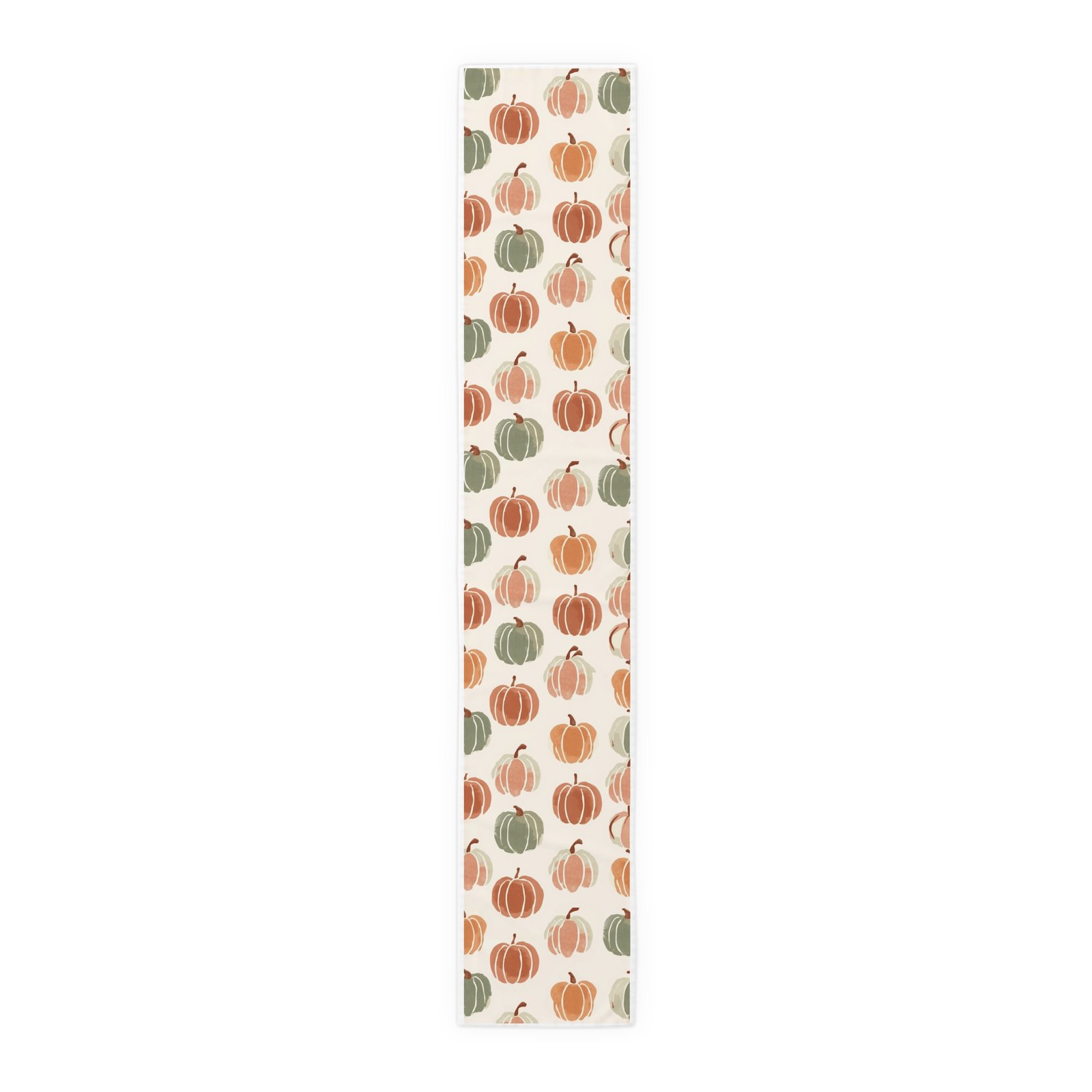 Soft, autumnal charm in a long, elegant runner — this table runner brings hand-painted pumpkin motifs and warm neutral tones to your seasonal table. Lightweight and drapey, it layers easily over wood, linen, or a neutral tablecloth to add texture and gentle color without shouting. Choose durable polyester with vivid sublimation printing for bright, long-lasting color and quick-dry performance, or opt for cotton twill with a slightly muted, classic finish and visible hem stitching for a homespun look. Available in two lengths to suit a cozy breakfast table or a longer dining setup. One-sided print and neatly hemmed edges ensure a tidy, finished appearance every time.